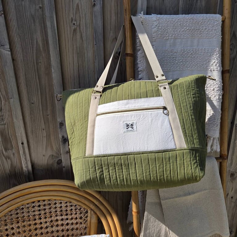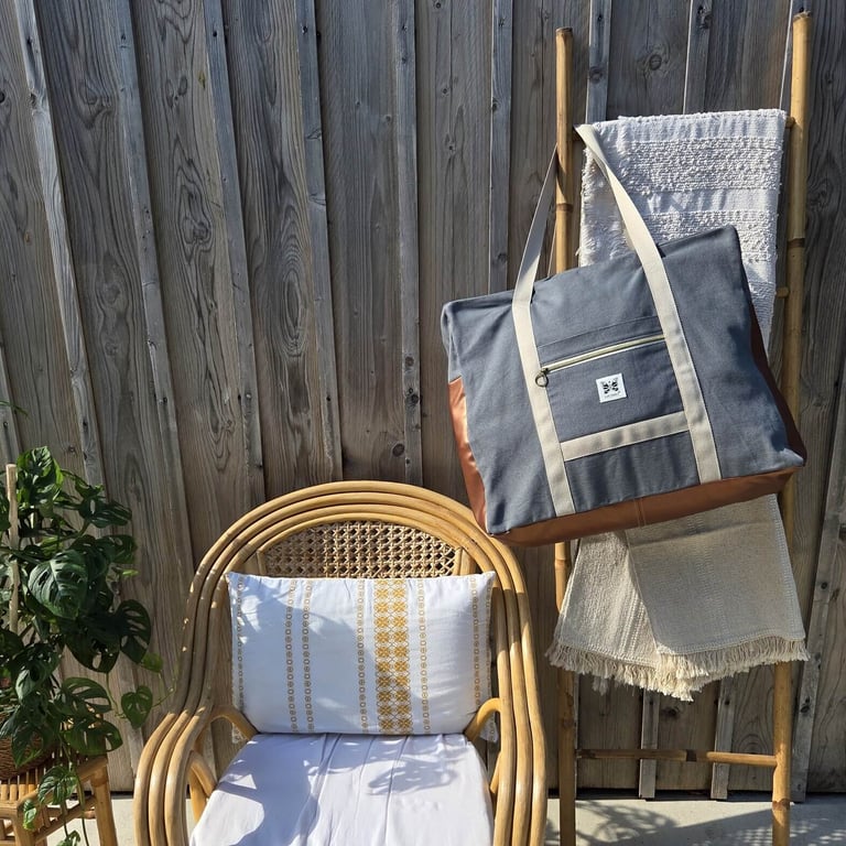 Loin des productions standardisées, je choisis de valoriser l’upcycling — linge de maison, ameublement, vêtements oubliés, chutes industrielles — et offrir une seconde vie aux matières, un supplément d’âme à vos déplacements.